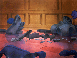 Ein Storyboard ist eine Reihe von hunderten von Skizzen wie diese, die zusammengesetzt einem riesigen Comic-Strip gleichen. Das Storyboard ist eine Veranschaulichung von Zeichentrick-Sequenz und Dialog in Abstimmung mit der Handlung. Es ermöglicht alle Beteiligten einen gemeinsamen visuellen Bezug zum Film. Es wird an die Wand montiert, davor werden Besprechungen von Regisseur, Zeichnern und Musikern abgehalten, u.a. für eventuell notwendige Änderungen.